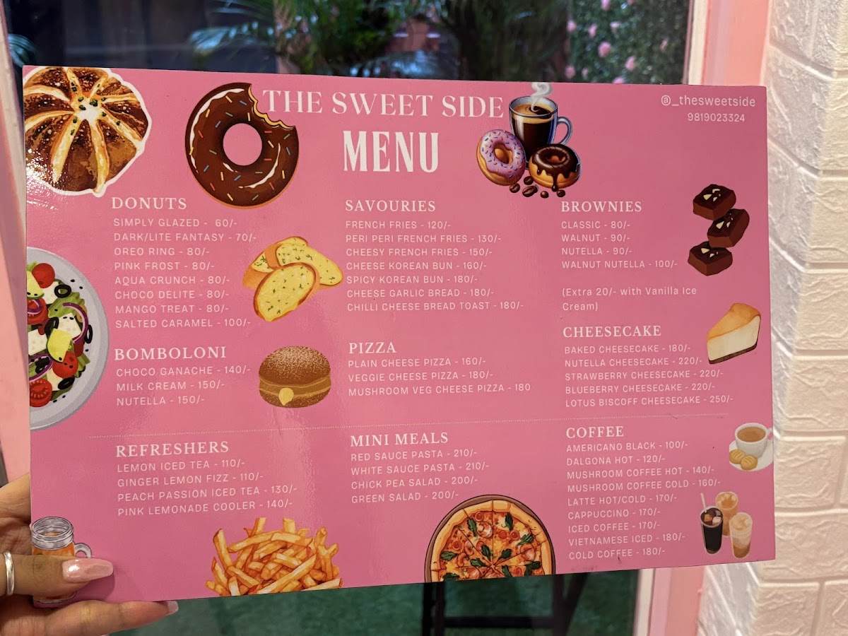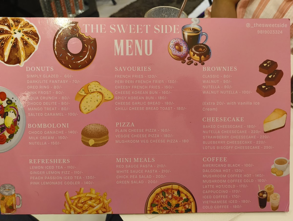 Welcome to The Sweet Side Café, a charming haven nestled in Mira Bhayandar, Maharashtra. This cozy café is a delightful spot, featuring an inviting atmosphere with both indoor intimacy and an outdoor space perfect for unwinding. The menu is a sweet lover's paradise, boasting a variety of donuts like the Pink Frost and Salted Caramel, alongside irresistible cupcakes such as Chocolate Ganache and Red Velvet Cheese.